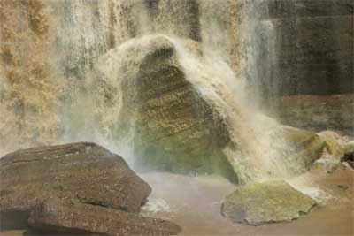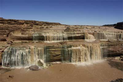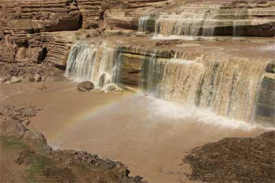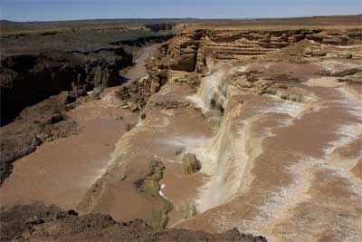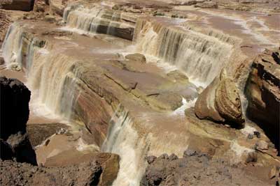 The river lives up to its name as it pours red, muddy water over the falls. | |