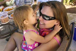 Abby discovers that she can see herself in Mom's sunglasses. She gets right up to the sunglasses and starts saying, "Abby! Abby! Abby!" Then to a squeal of delight she sees..."Papa! Papa!" Pretty soon it became her own little window on the world. | ||