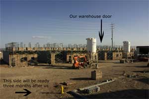 take over the house. So we started looking around for a warehouse and found a developer who was about to start on a small warehouse project here in Boulder City. It was supposed to be completed in April 2005, but because of the inevitable delays, it is just now being built. It is supposed to be finished by September.  |
